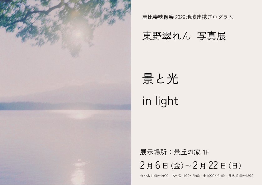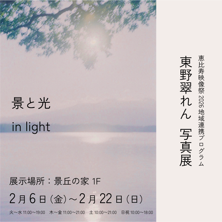 恵比寿映像祭2026 地域連携ワークショップ 景丘の家と東京都写真美術館の探検プログラム『恵比寿映像祭でじっくりみてみよう!』講師 東京都写真美術館普及係 景丘の家出品作家・講師 東野翠れん/写真家