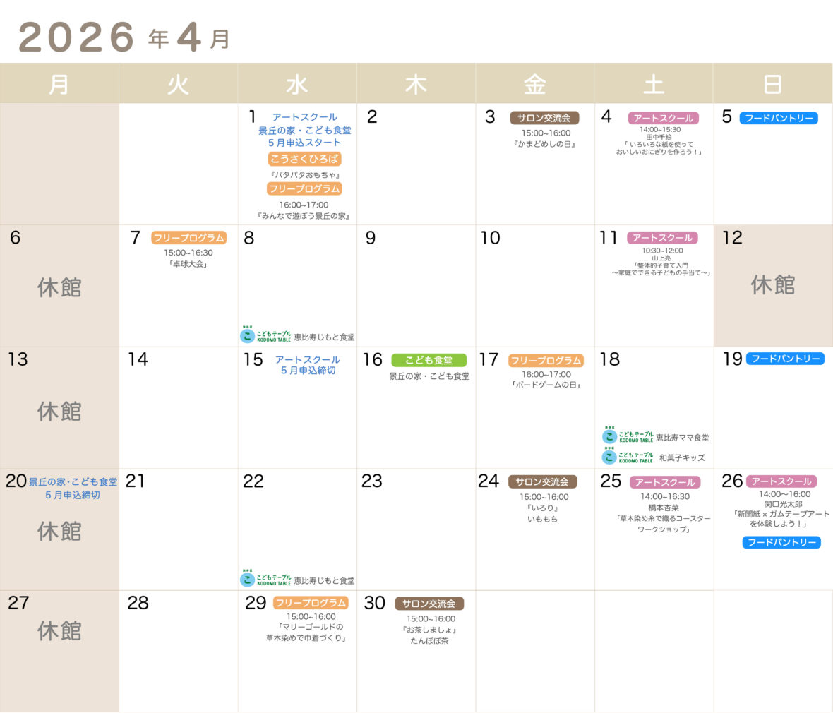 2026年4月のアートスクール