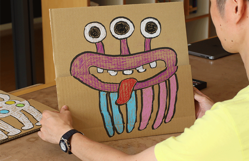 段ボールに自分だけのオリジナルペットをかいて、コマドリアニメで動かそう!