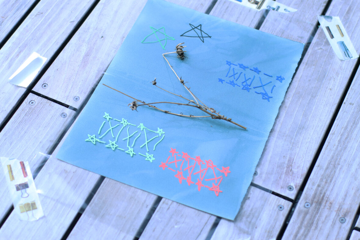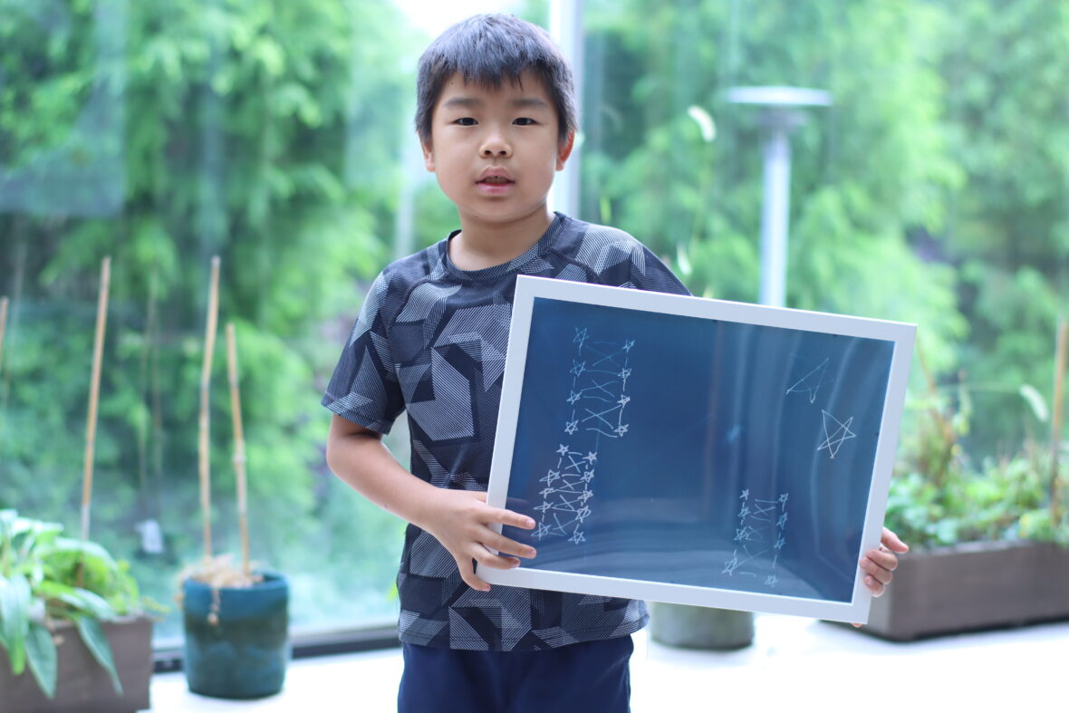 笑い声と「もうちょっと左!」「そのままで!」という声が響くなか、少しずつ作品が完成していきます。