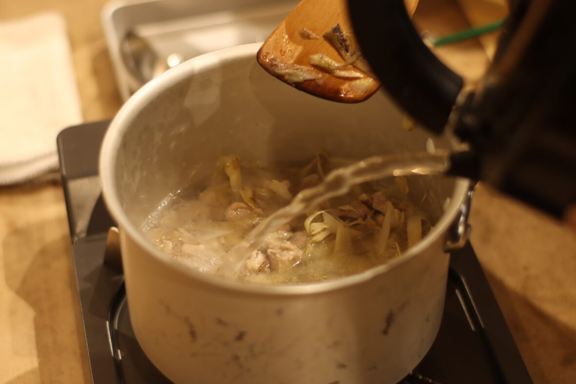 「鶏汁」は一世帯当たりの鶏肉購入量が全国トップレベルの大分県らしい一品。さまざまな鶏料理がある中、身や内臓は鶏めしややがめ煮に、残りの鶏ガラは鶏汁に・・・と、余さず使う知恵から生まれました。