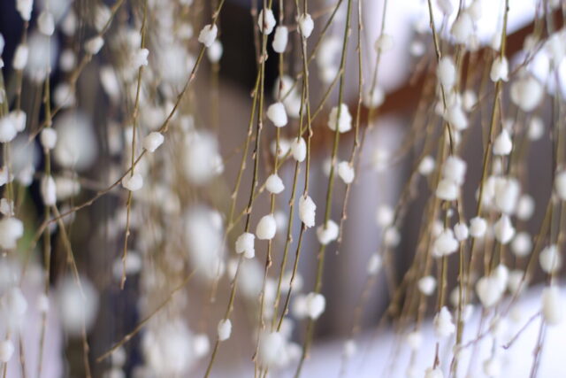 新年の五穀豊穣を願いながら、柳の枝に小さく切ったお餅をつけてきれいな花を咲かせましょう。
