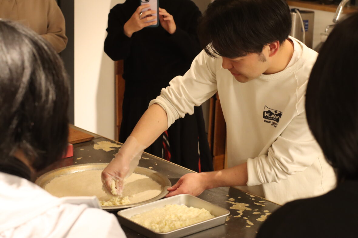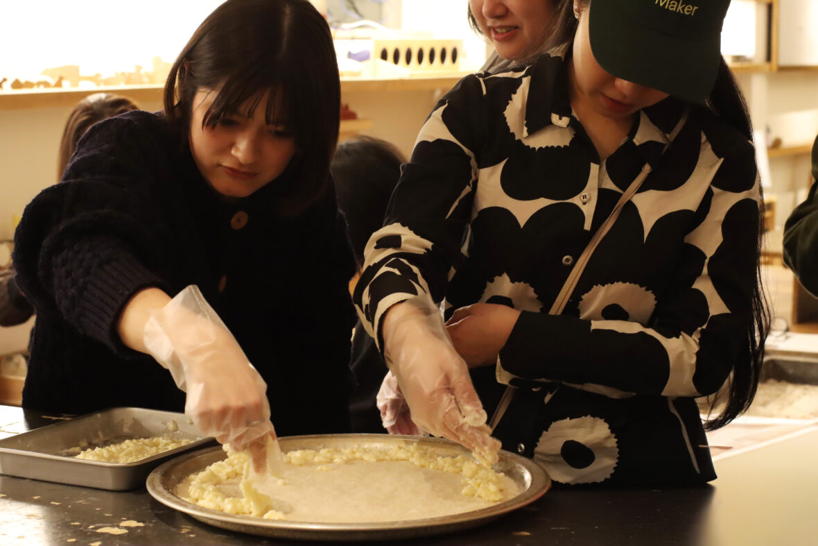大きな鉄板ひとつを囲み、みんなで同じ作業をする時間は、不思議と人と人との距離を縮めていきます。