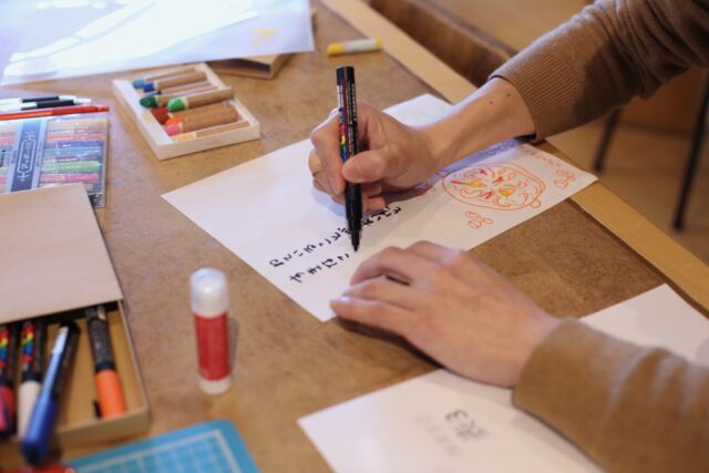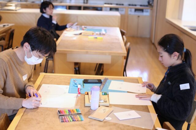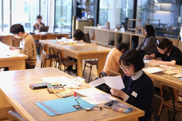 いよいよ制作スタート。何を書くか決まってくれば、みんなの手も動いていきます。写真を使いたい人は、持参した候補の中から選んで出力、絵を使う人は好きな絵を描いていきます。みんながそれぞれに手を動かして制作をして、会場はさながら雑誌の編集部のようでした。