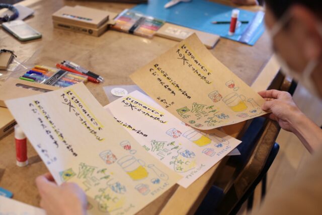 最後には、参加の小学生の女の子が出来上がったZINE1冊にメッセージを添えて、石川さんにプレゼントしたり、以前作ったZINEをお持ちいただいた方と石川さんでお話をされたり、とみんながそれぞれにZINEを楽しむ時間になりました。